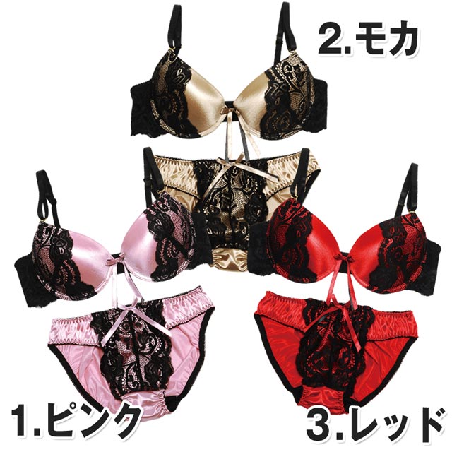 ビビットカラー×黒レースが超SEXY☆カップには大胆な黒レースで落ち着きのあるゴージャス感を演出☆胸元にはCUTEな細リボン☆この細リボンは2色使いで可愛いポイント☆ブラのベルトはセクシーな総レース☆ショーツも同じ黒レース×リボンで小悪魔度UP☆これ1つでセクシーBODY☆