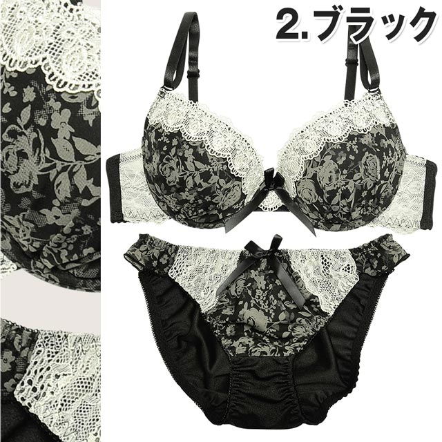 大人COOLでSEXYに魅せるブラショーが登場☆デザインは流行りのROSE柄に可愛い白レースが被さっています♪ショーツも同じROSE柄×白レースのデザイン◎胸元はショーツと同じリボン付き☆パッドはWパッド仕様なので谷間MAKEも完璧♪大人COOL×SEXYデザイン☆なので超オススメだよ♪