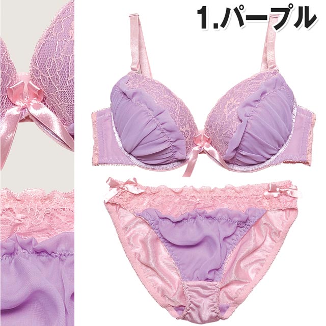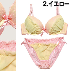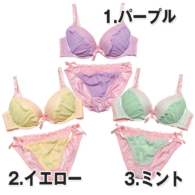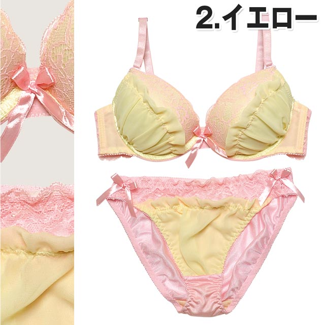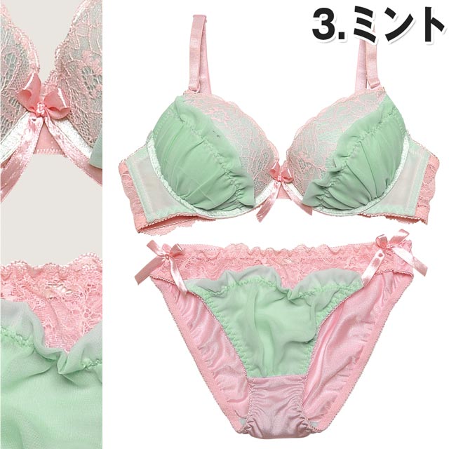 CUTEブラの登場☆CUTEな透けレースをふんわりシフォンで優しく包み込んだようなデザイン♪センターにはリボン☆カップベルトはすけすけの総レース仕様でSEXY感もあり!!ショーツのフロント上部分は透け感抜群のレース仕様で大胆に魅せる☆下部分はブラと同じシフォン☆サイドにはCUTEなリボン付き!!パッドはWパッド仕様だから谷間もくっきり!!ふんわりエアリーデザインで天使のような可愛いブラショーだよ(*´ω`*)