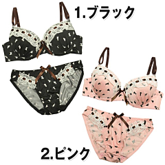 CUTEさ抜群◎可愛いcat柄のガーリーランジェが登場☆つるんとしたサテンにcatプリントが胸いっぱいに広がっていて超CUTE♪胸元にはCUTEレース×ラッピング風リボン付き☆レースの中にラッピング風リボンが編みこまれていてCUTE感抜群(●´ω`●)!!大人上品さを演出させてくれるよ☆ショーツも同じcat柄のレース×リボンデザインで大人可愛く魅せるッ☆パッドはWパッド仕様なのでボリュームUPも間違いなし!?ラブリーなブラショーをあなたもぜひ試してみてね!!