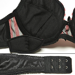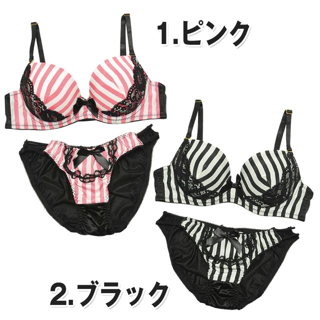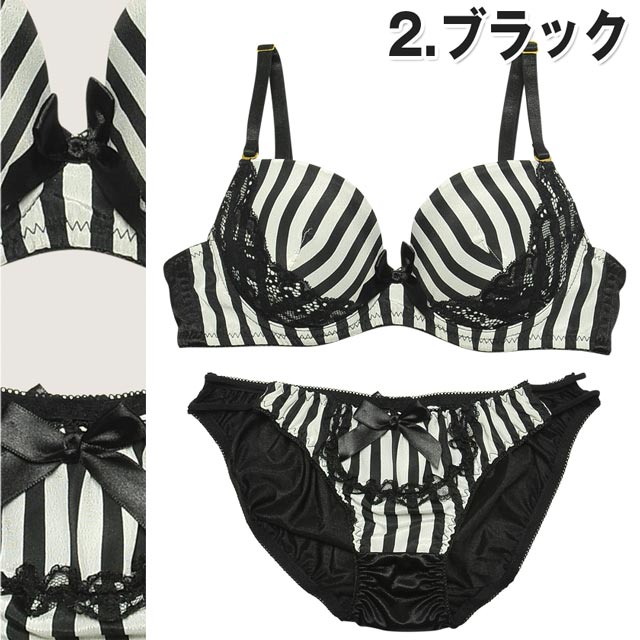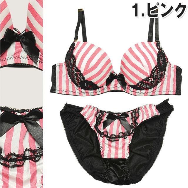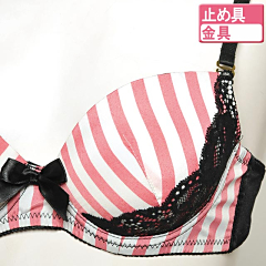 2色使いの大胆なストライプランジェが登場☆ストライプの上にはBLACKレースがかぶさっておりより小悪魔に魅せてくれる♪胸元には存在感のあるリボン☆ショーツも同じストライプ×リボン×レースのデザイン☆リボンを囲むようにレースが付いているよッ♪ショーツサイドはWストリング仕様なので腰周りをスッキリ魅せてくれます!!後ろにはリボン×涙型ホール仕様なのでバックスタイルも完璧!!パッドはWパッド仕様なので綺麗な谷間が出来ちゃうかも!?あなたもぜひGETしてみてね☆