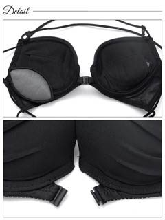 【EFサイズ】アリュールレースアップ育乳脇高ブラジャー&バック透けTバックショーツ[大人気]