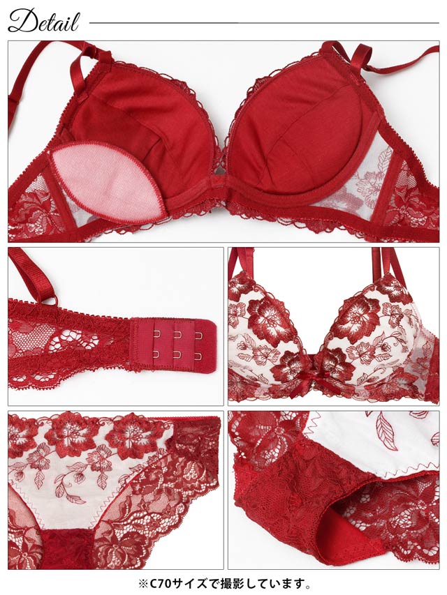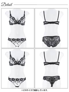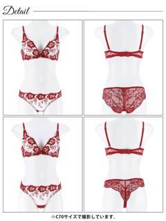1/31再販!【3点セット】【EFサイズ】ベルフルールエンブロイダリーブラジャー&バック透けフルバック&Tバックショーツ[大人気]