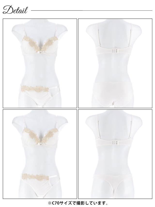 【三上悠亜着用】【3点セット】エトワールリボンレース育乳脇高ブラジャー&フルバック&Tバックショーツ[大人気]