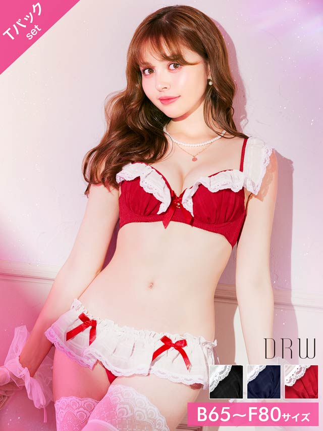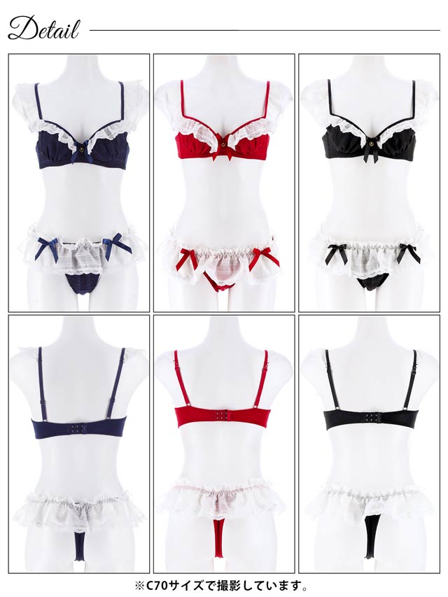 10/9再販!ラブリーフリルメイドブラジャー&Tバックショーツ[大人気]
