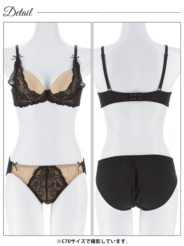 オールレースカットストリング育乳脇高ブラジャー&バック透けフルバックショーツ
