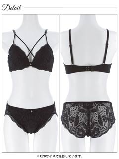 オールレースカットストリング育乳脇高ブラジャー&バック透けフルバックショーツ