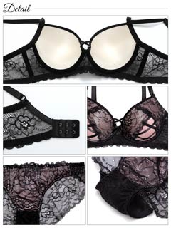 オールレースカットストリング育乳脇高ブラジャー&バック透けフルバックショーツ
