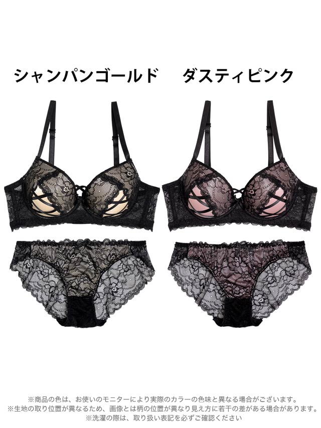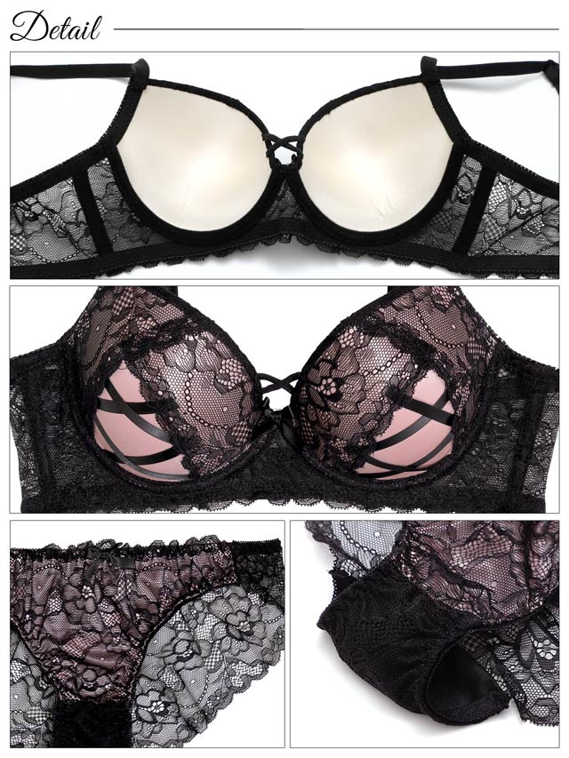 【EFサイズ】ビタースウィートレース育乳脇高ブラジャー&バック透けフルバックショーツ[大人気]