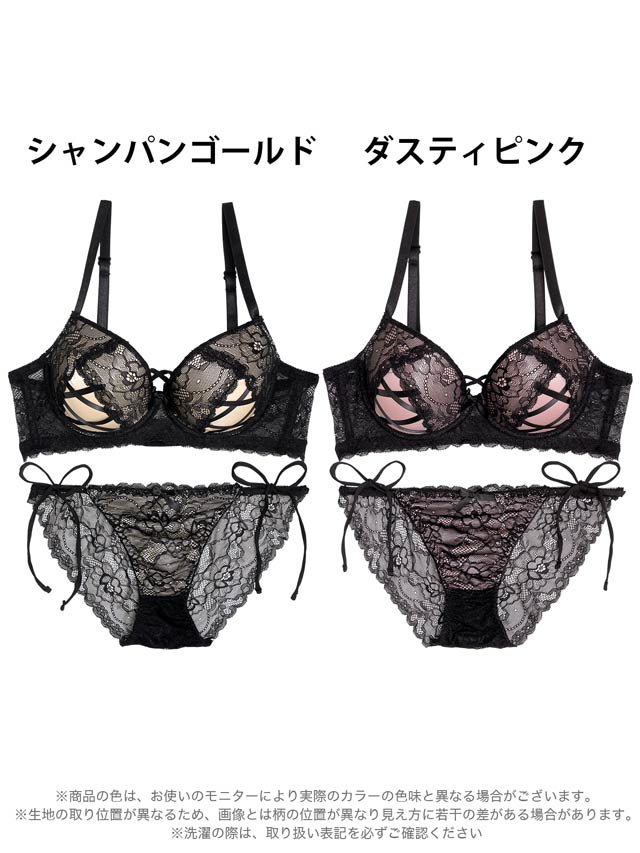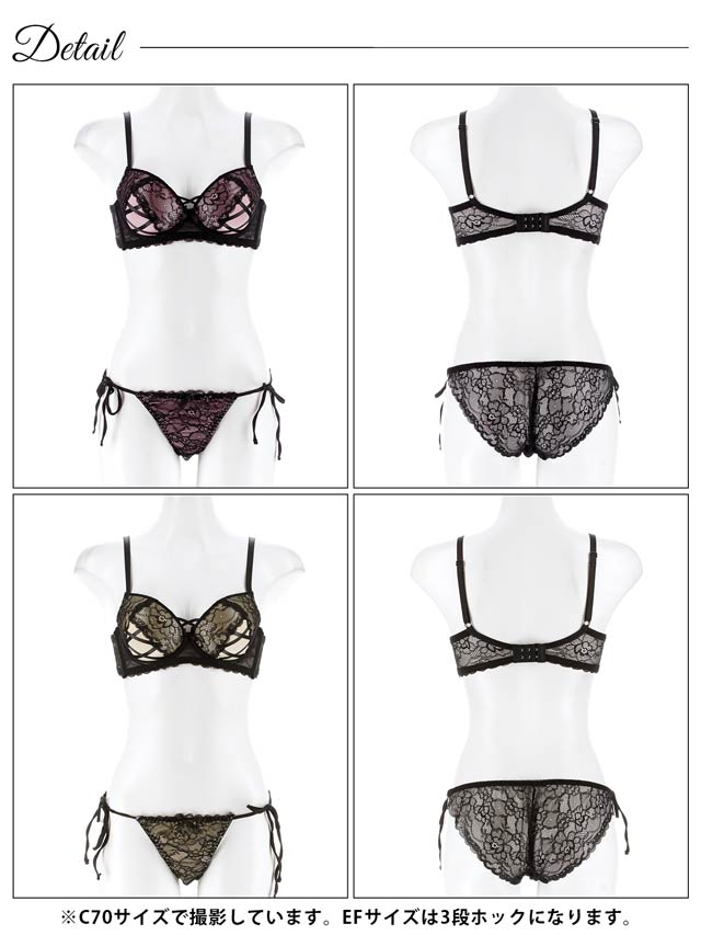 【EFサイズ】ビタースウィートレース育乳脇高ブラジャー&サイド紐バック透けフルバックショーツ[大人気]