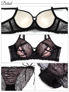 11/15再販!オールレースカットストリング育乳脇高ブラジャー&バック透けフルバックショーツ[激売れ]