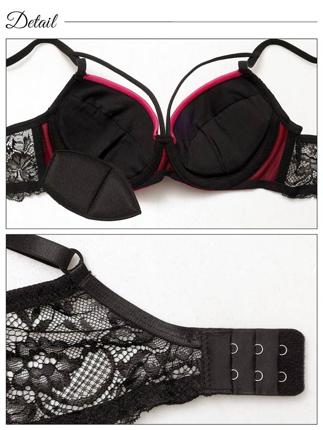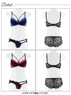オールレースカットストリング育乳脇高ブラジャー&バック透けフルバックショーツ