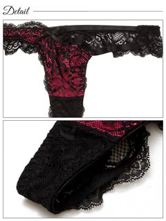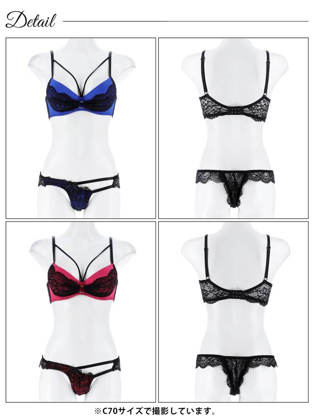 オールレースカットストリング育乳脇高ブラジャー&バック透けフルバックショーツ
