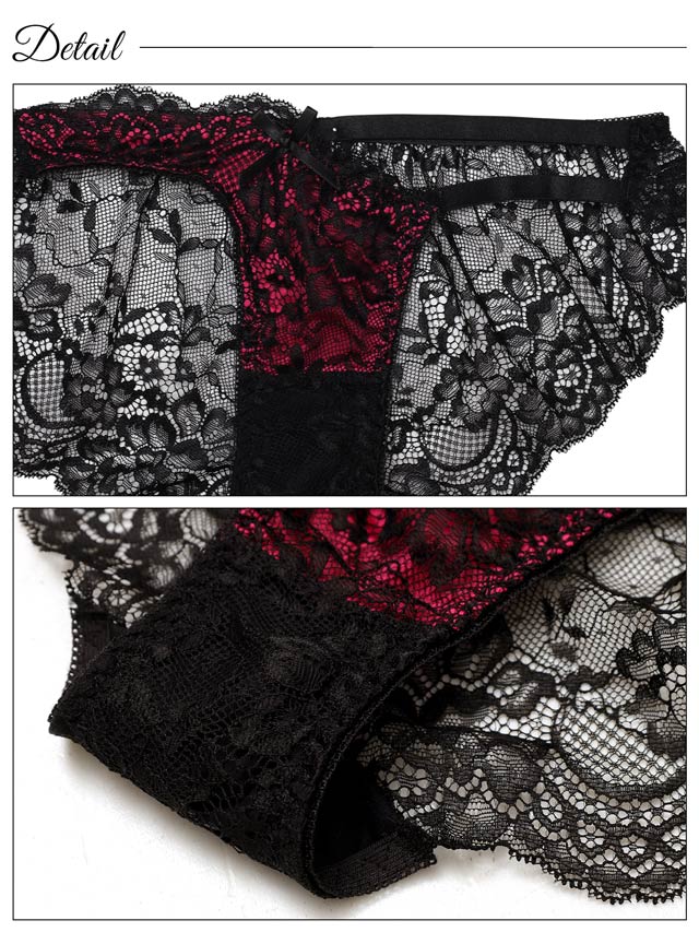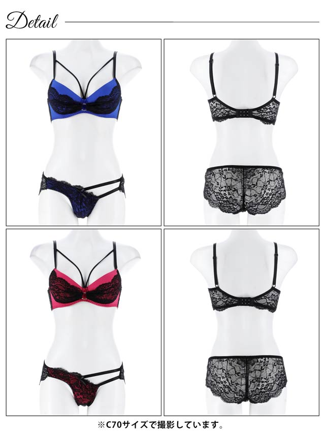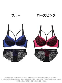 オールレースカットストリング育乳脇高ブラジャー&バック透けフルバックショーツ
