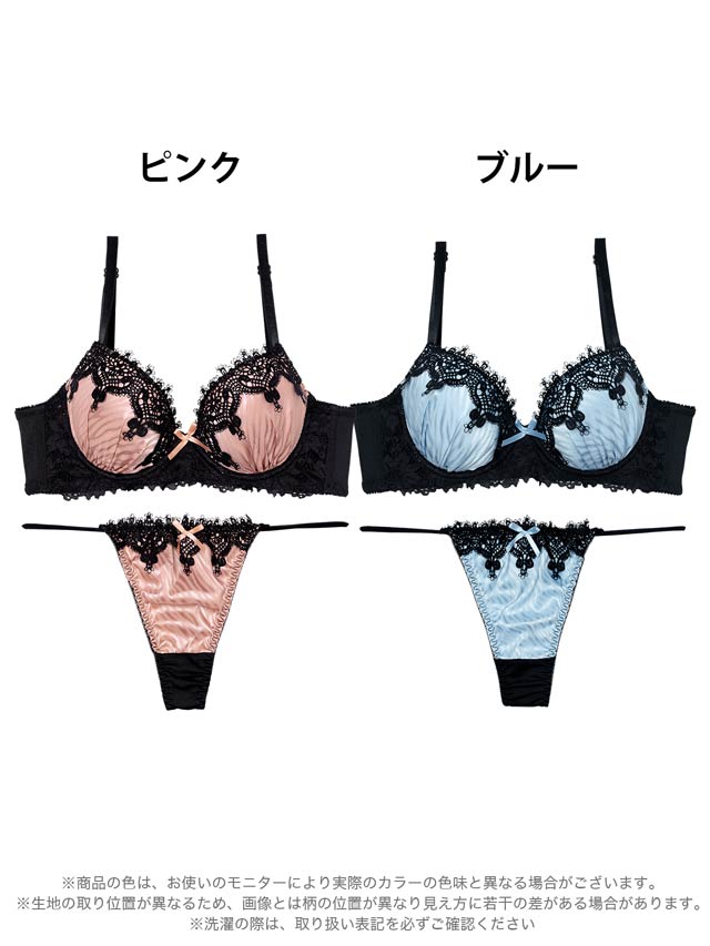 フロレゾンローズレース育乳脇高ブラジャー&サイド紐バック透けフルバックショーツ