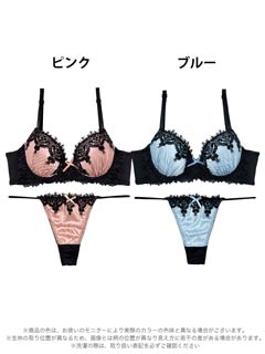 ダスティブルームエンブロイダリー育乳脇高ブラジャー&バック透けフルバックショーツ