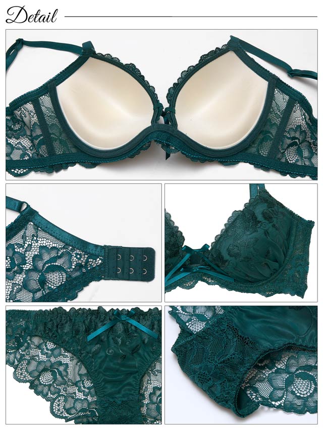 オールレースカットストリング育乳脇高ブラジャー&バック透けフルバックショーツ
