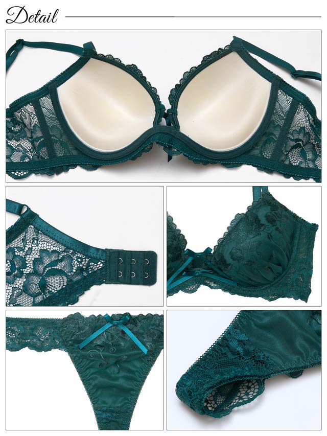 オールレースカットストリング育乳脇高ブラジャー&バック透けフルバックショーツ