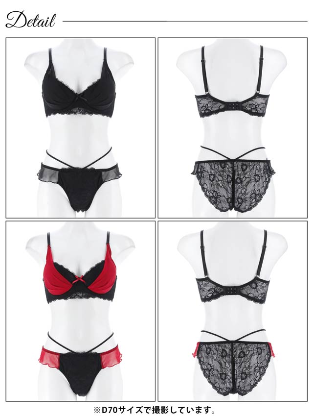 オールレースカットストリング育乳脇高ブラジャー&バック透けフルバックショーツ
