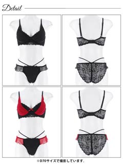 【EFサイズ】ロマンティックビターレースブラジャー&Tバックショーツ[大人気]