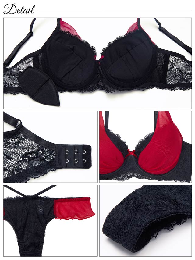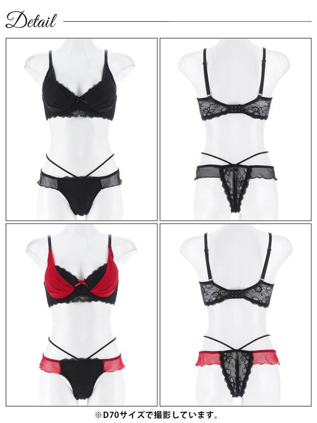オールレースカットストリング育乳脇高ブラジャー&バック透けフルバックショーツ