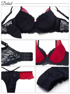 【EFサイズ】ロマンティックビターレースブラジャー&フルバックショーツ[大人気]