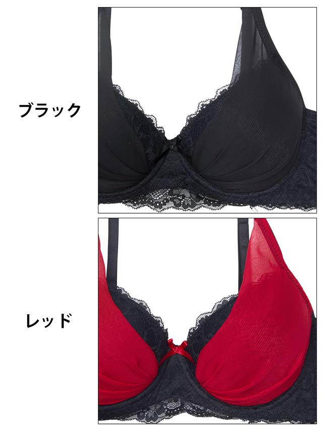 【EFサイズ】バイカラーシアースカラップブラジャー&バック透けフルバックショーツ[大人気]