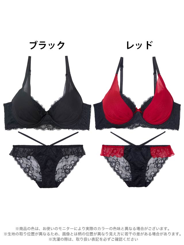 【三上悠亜着用】シックフラワーエンブロイダリーブラジャー&サイド紐フルバックショーツ[プチプラ]