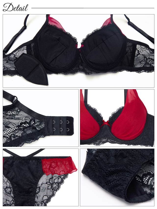 オールレースカットストリング育乳脇高ブラジャー&バック透けフルバックショーツ