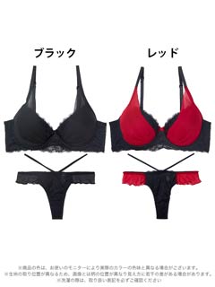 オールレースカットストリング育乳脇高ブラジャー&バック透けフルバックショーツ