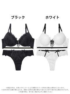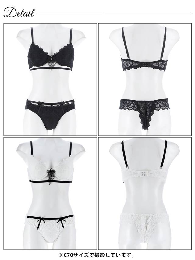 上品な総レースと胸元のケミカルレースモチーフが視線を惹きつける優美なデザインのランジェリー。バスト下やショーツフロントにはテープをあしらいセクシーなアクセントをプラス♪ショーツはバック透けレース仕様で、後ろ姿まで色っぽく華やかに見せてくれます。