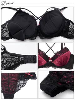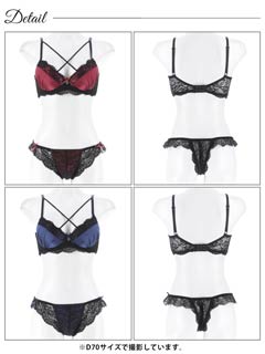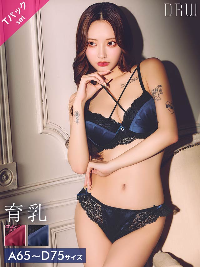 ディープサテンリボンコード育乳脇高ブラジャー&バック透けTバックショーツ[激売れ][週替][スーパーセール]