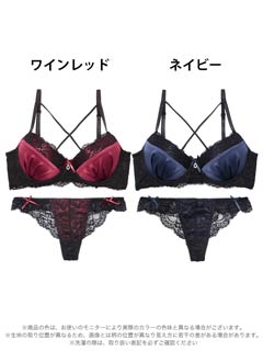 オールレースカットストリング育乳脇高ブラジャー&バック透けフルバックショーツ