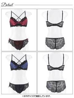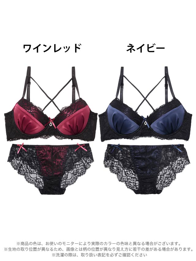 【EFサイズ】ディープサテンリボンコード育乳脇高ブラジャー&バック透けフルバックショーツ[大人気]