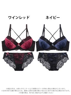 オールレースカットストリング育乳脇高ブラジャー&バック透けフルバックショーツ