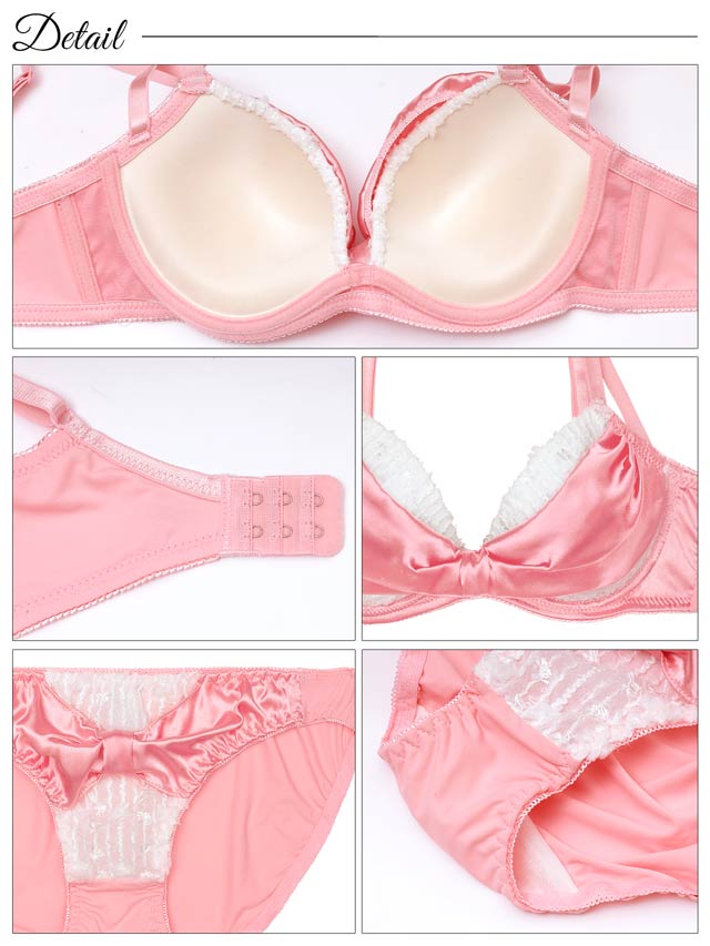 9/18再販!【かとゆり着用】【EFサイズ】プリティーグロスリボン育乳脇高ブラジャー&フルバックショーツ[大人気]