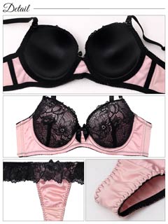 【Reinest】グラマラスサテンコードブラジャー&バック透けTバックショーツ[大人気]