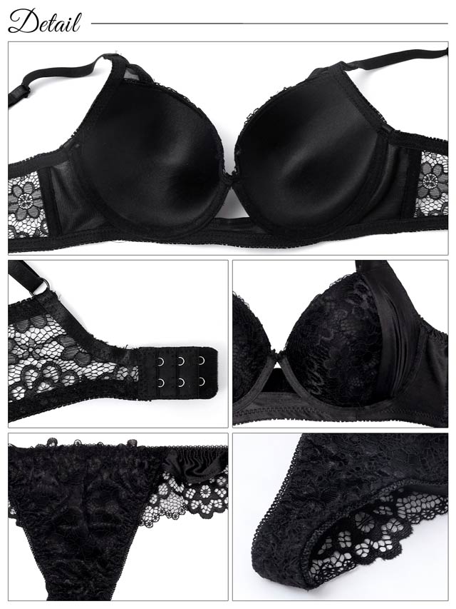 オールレースカットストリング育乳脇高ブラジャー&バック透けフルバックショーツ