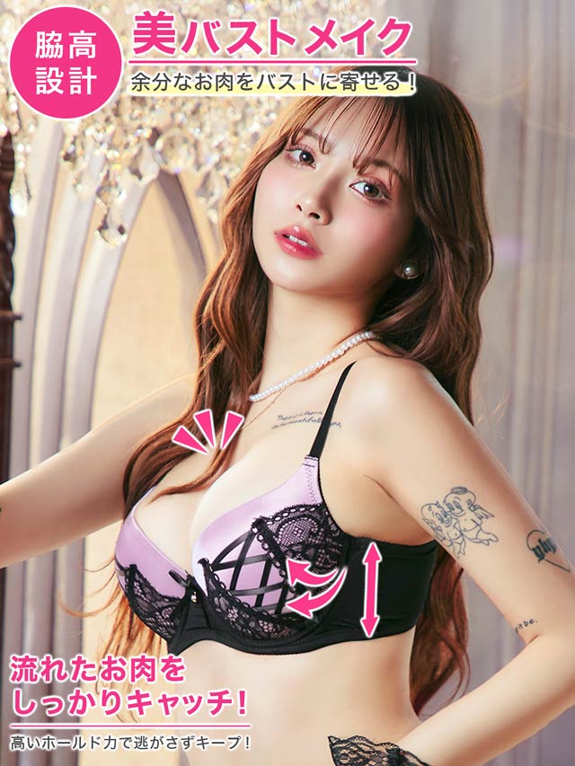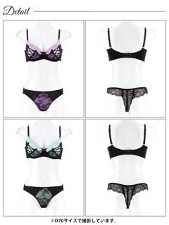 オールレースカットストリング育乳脇高ブラジャー&バック透けフルバックショーツ