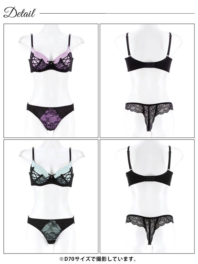 アリュールレースアップ育乳脇高ブラジャー&バック透けTバックショーツ[激売れ][週替][スーパーセール]