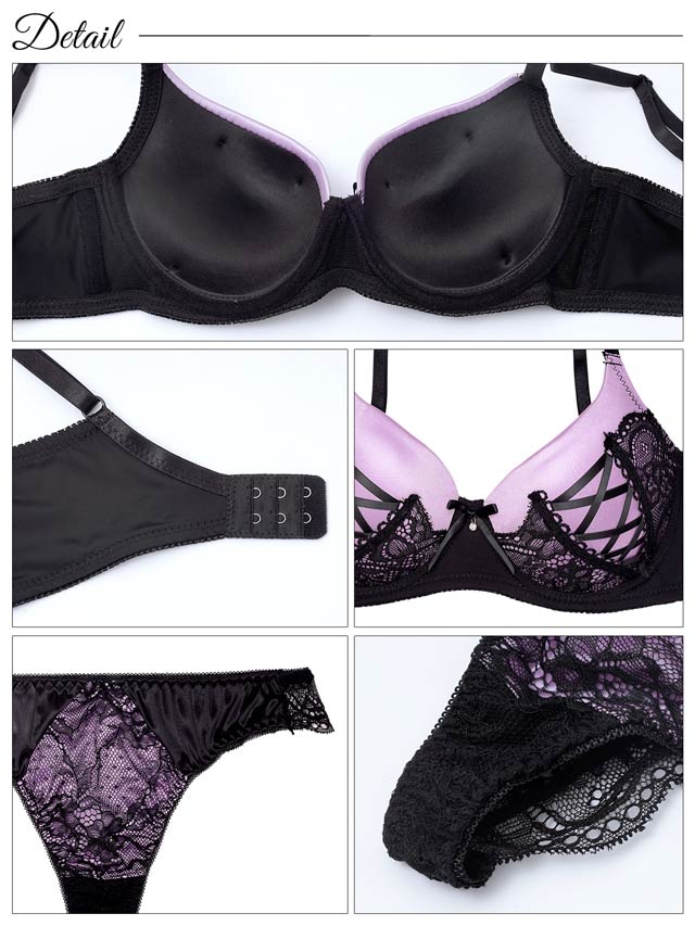 モダンレース育乳脇高ブラジャー&フルバックショーツ[プチプラ]
