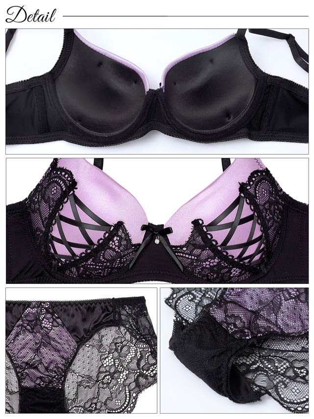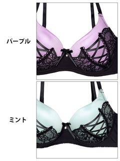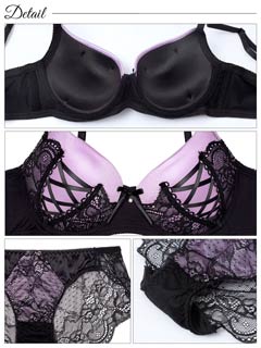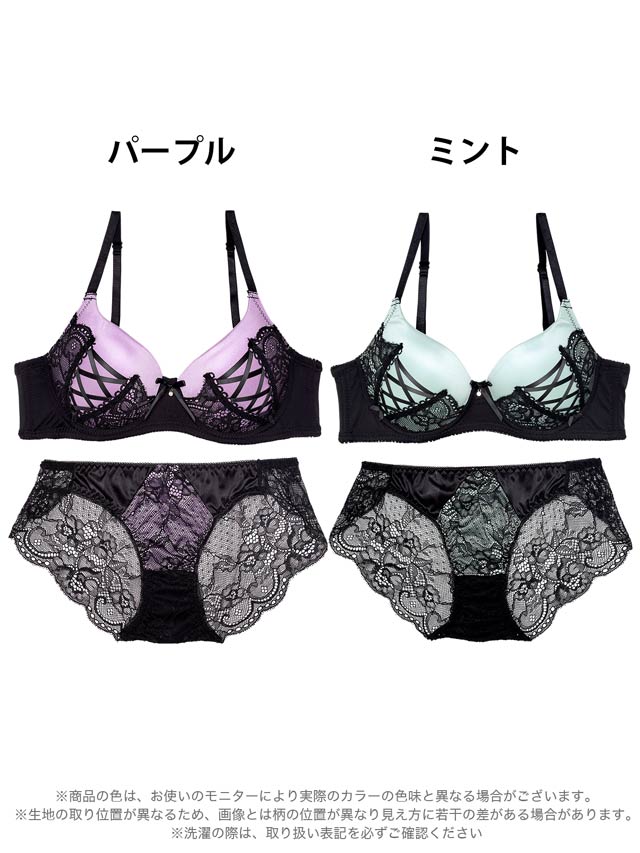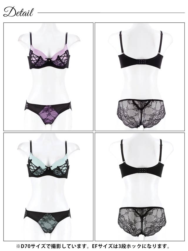 【EFサイズ】アリュールレースアップ育乳脇高ブラジャー&バック透けフルバックショーツ[大人気]