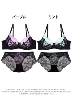 オールレースカットストリング育乳脇高ブラジャー&バック透けフルバックショーツ