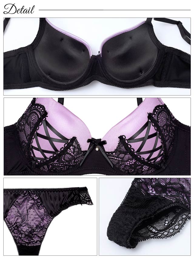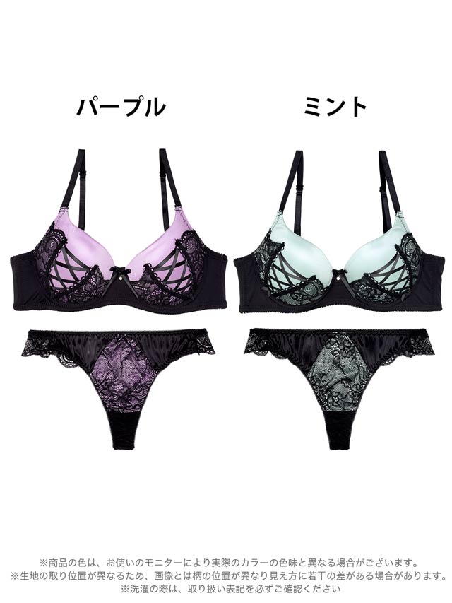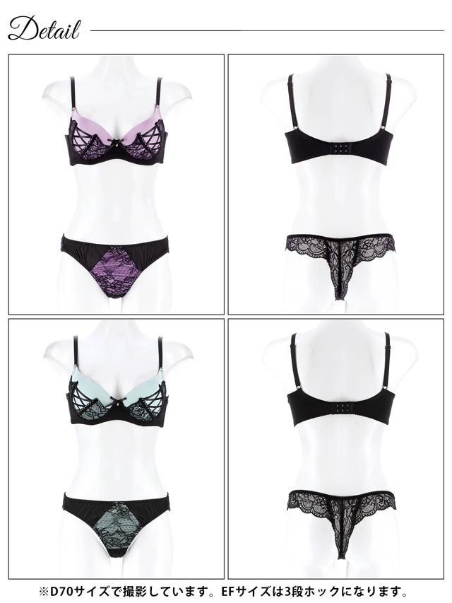 【EFサイズ】アリュールレースアップ育乳脇高ブラジャー&バック透けTバックショーツ[大人気]