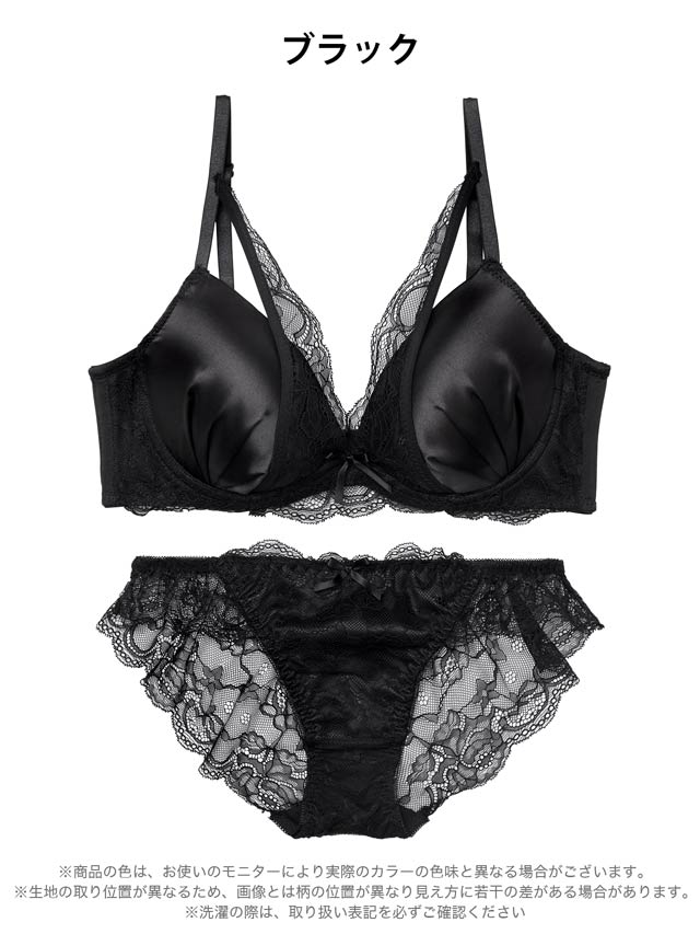 11/15再販!【三上悠亜着用】【EFサイズ】ロイヤルサテンレース育乳脇高ブラジャー&バック透けフルバックショーツ[大人気]