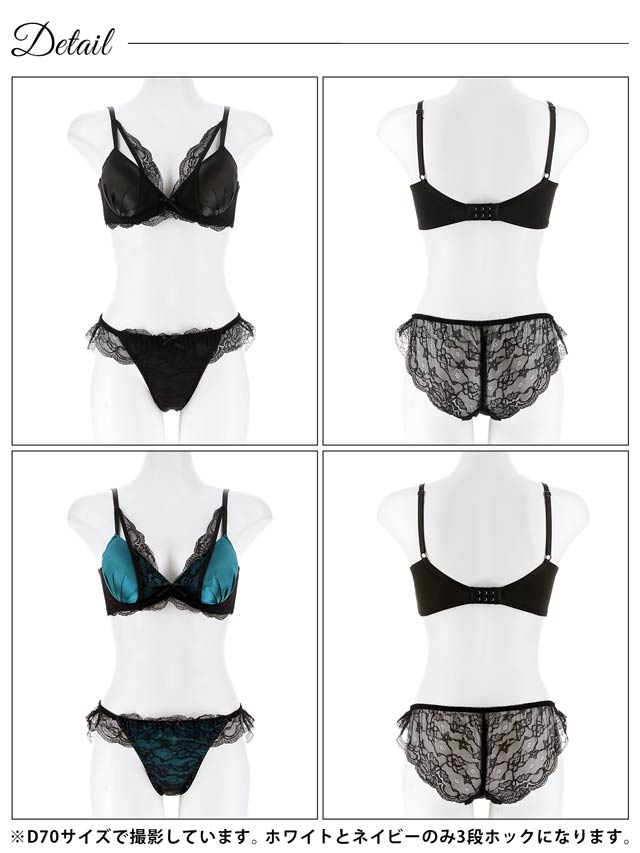 オールレースカットストリング育乳脇高ブラジャー&バック透けフルバックショーツ