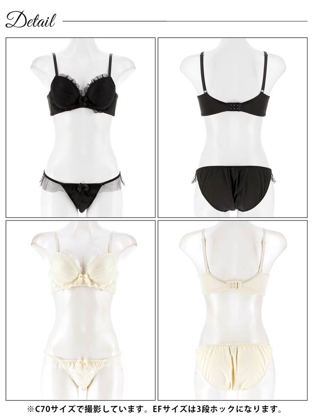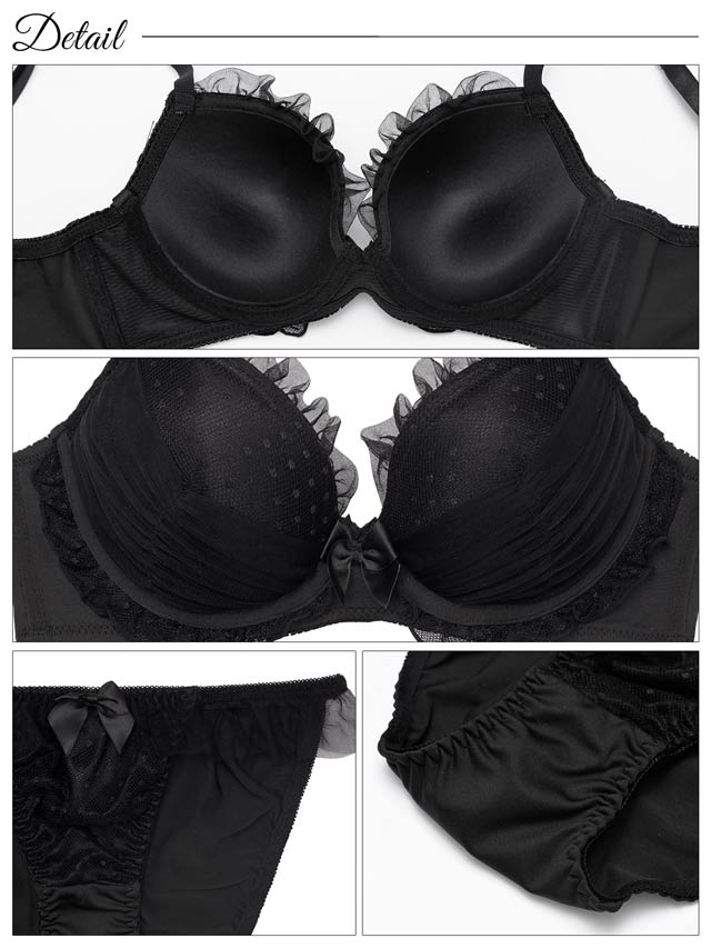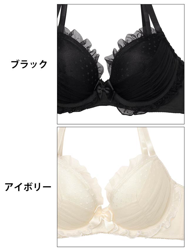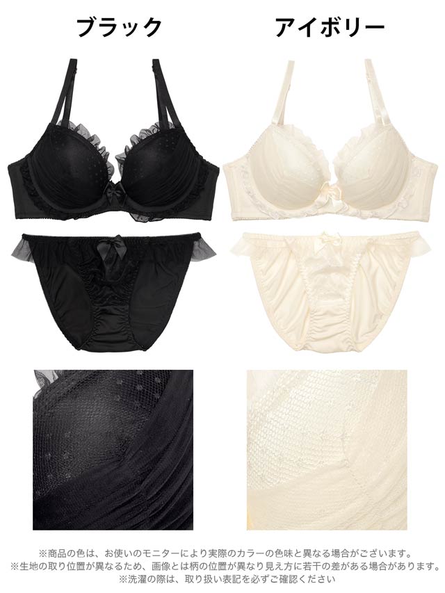 【EFサイズ】メロウドットチュール育乳脇高ブラジャー&フルバックショーツ[大人気][週末セール]
