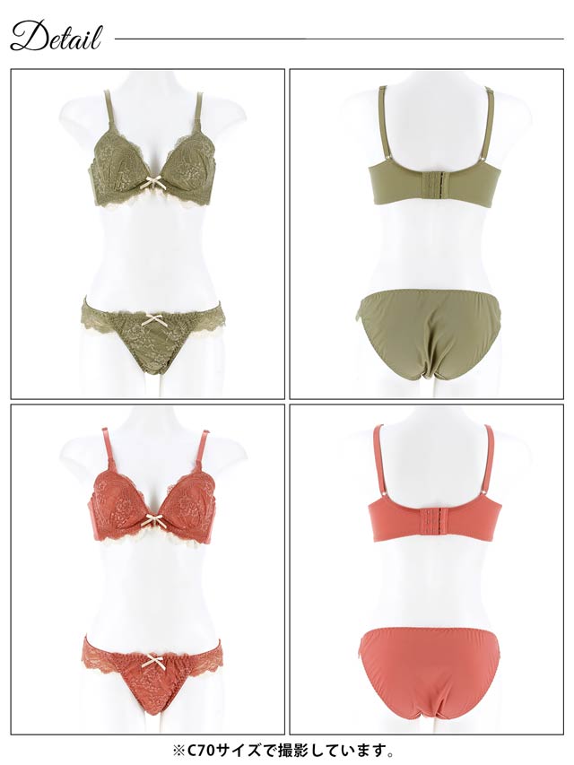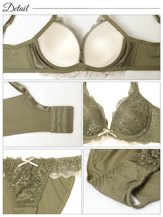オールレースカットストリング育乳脇高ブラジャー&バック透けフルバックショーツ