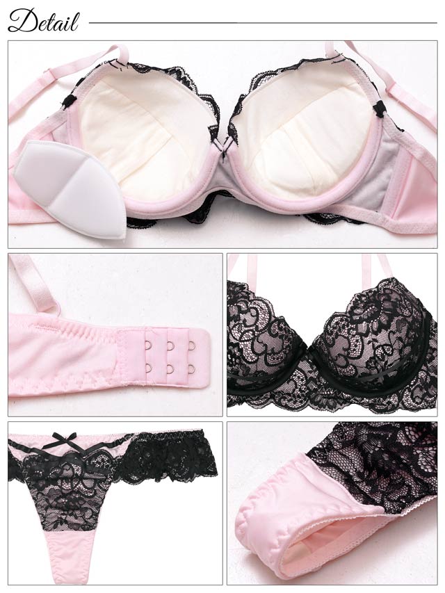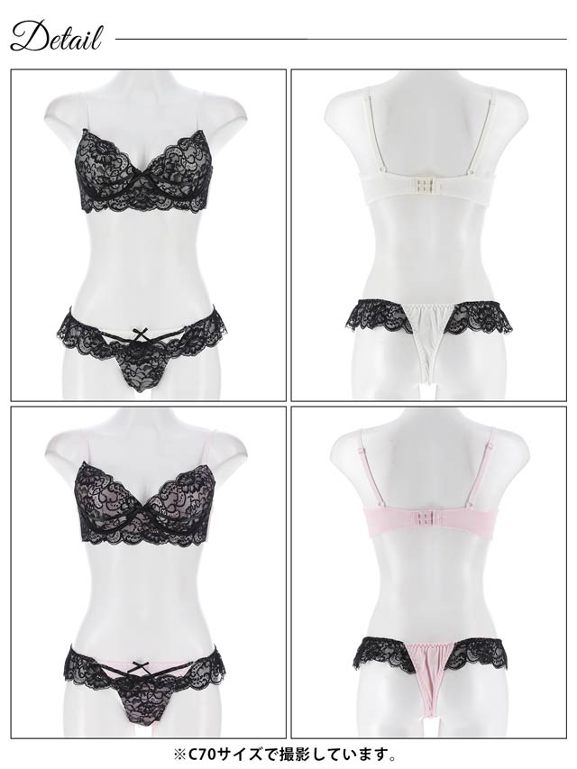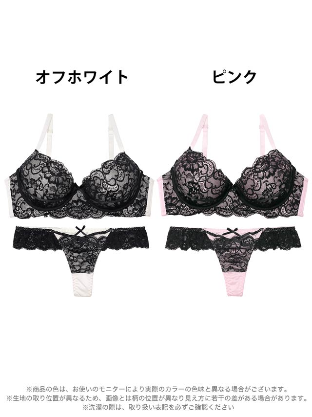 オールレースカットストリング育乳脇高ブラジャー&バック透けフルバックショーツ