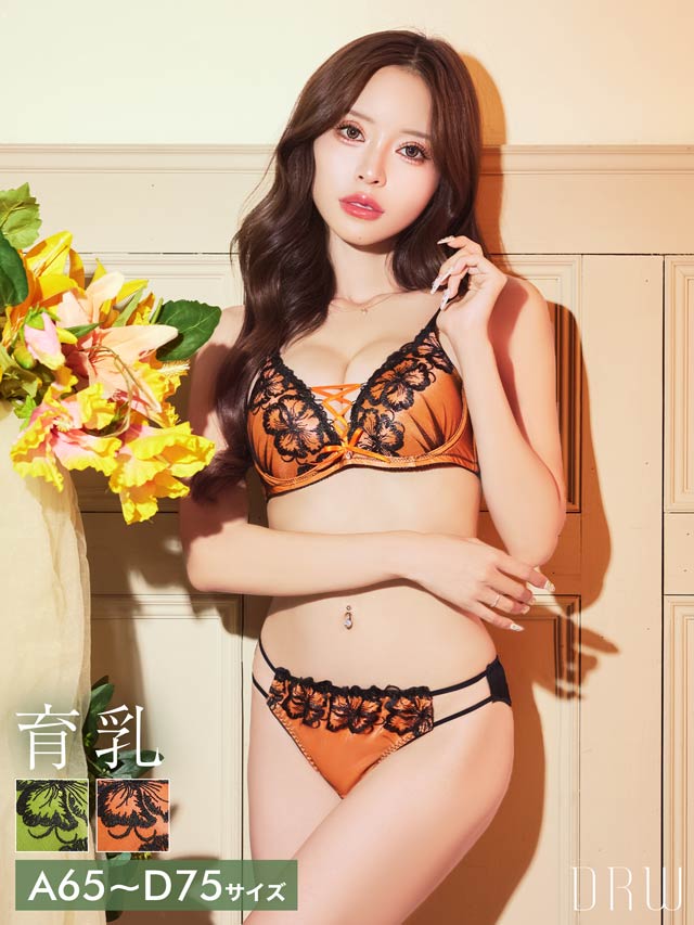 ダスティブルームエンブロイダリー育乳脇高ブラジャー&バック透けフルバックショーツ